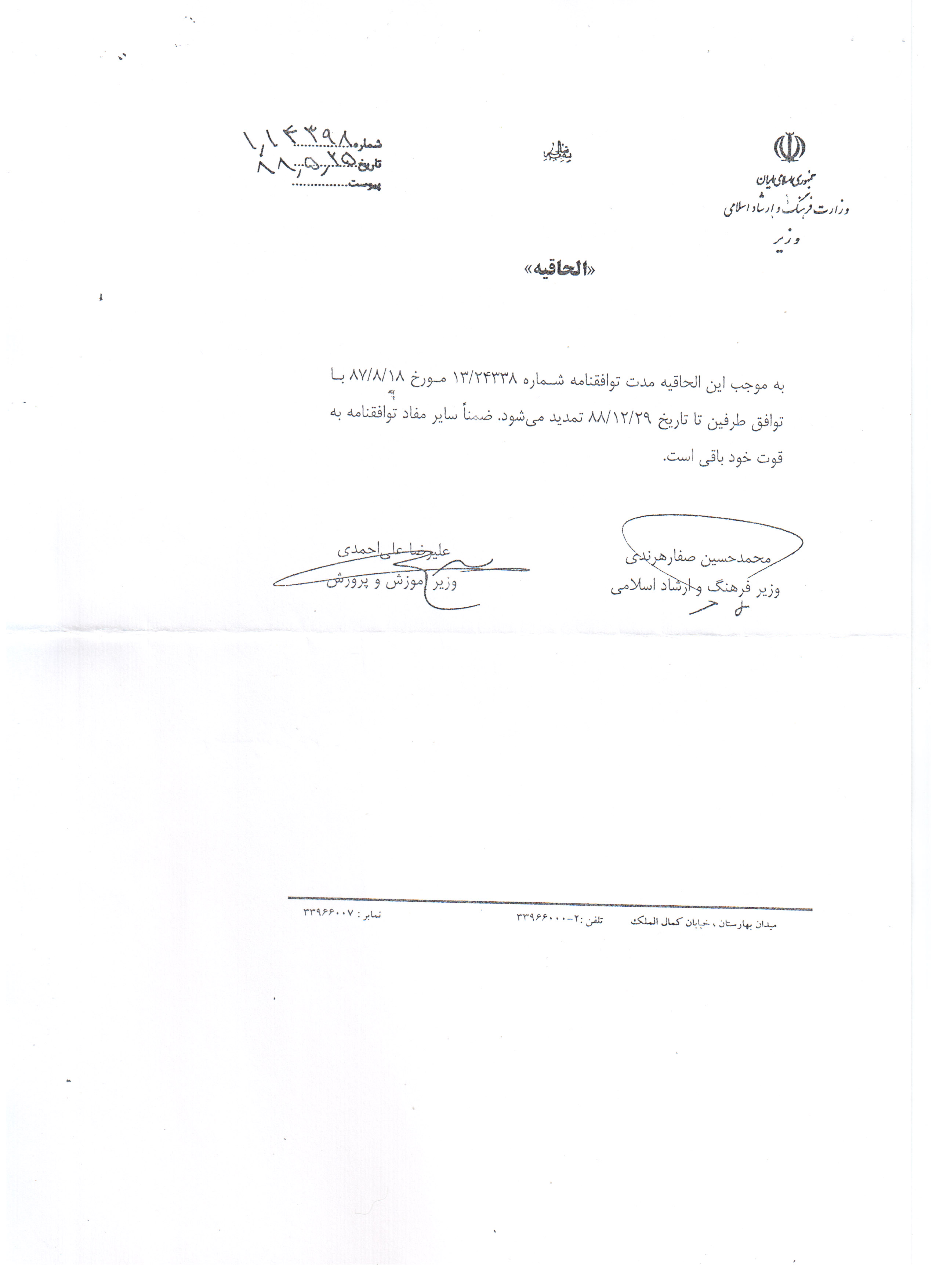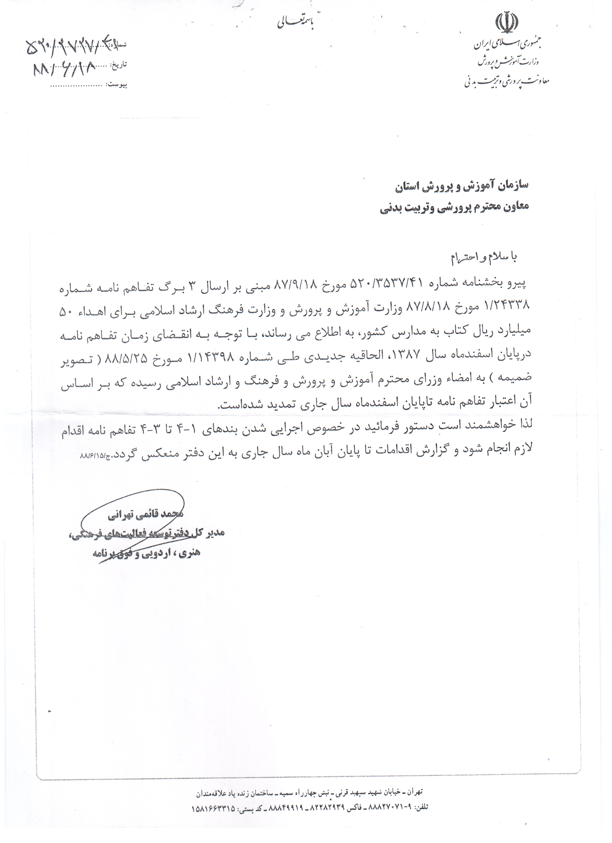 تفاهم نامه وزارت آموزش و پرورش و وزارت فرهنگ و ارشاد اسلامي براي اهداء 50 ميليارد ريال كتاب به مدارس كشور